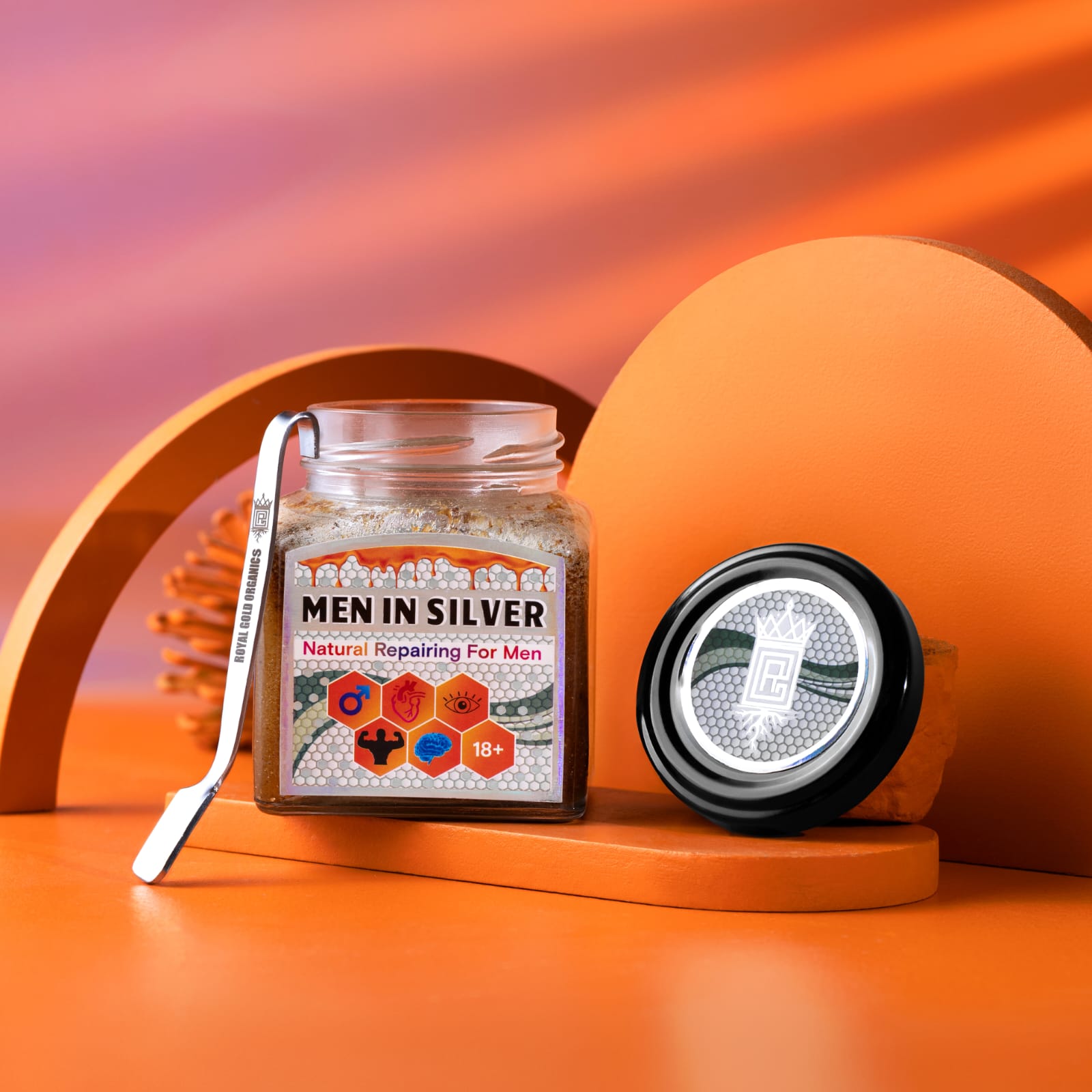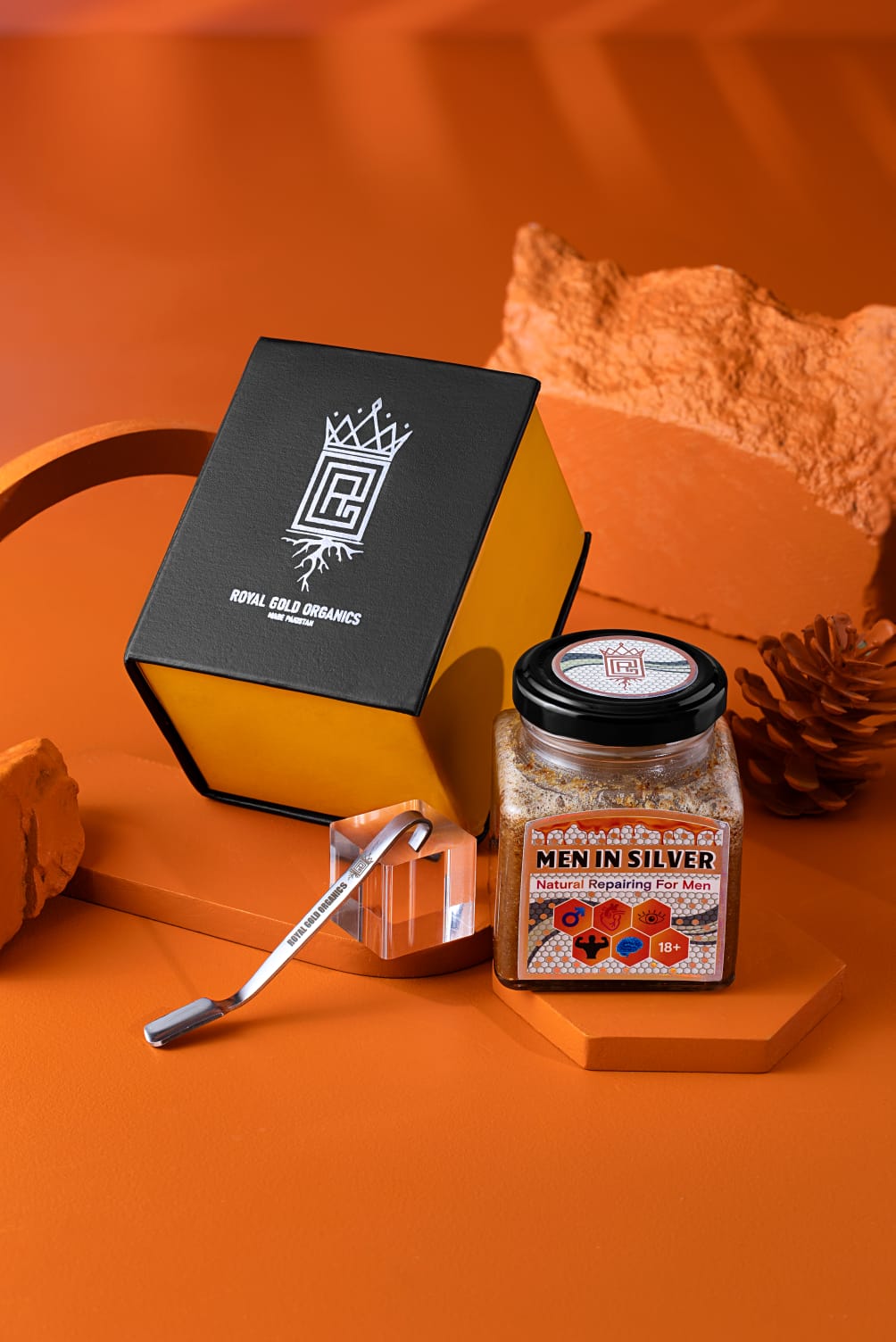 Men in Silver is a powerful Unani herbal Majoon designed to support male energy, stamina, and performance.Made with high-quality, chemical-free ingredients, it helps improve focus, vitality, and overall wellness.The natural aphrodisiac blend works to restore strength from within and keep you active throughout the day.Lab tested for purity and crafted by Royal Gold Organics, it’s safe and highly effective.Perfect for men who want to feel confident, energetic, and in control – naturally.