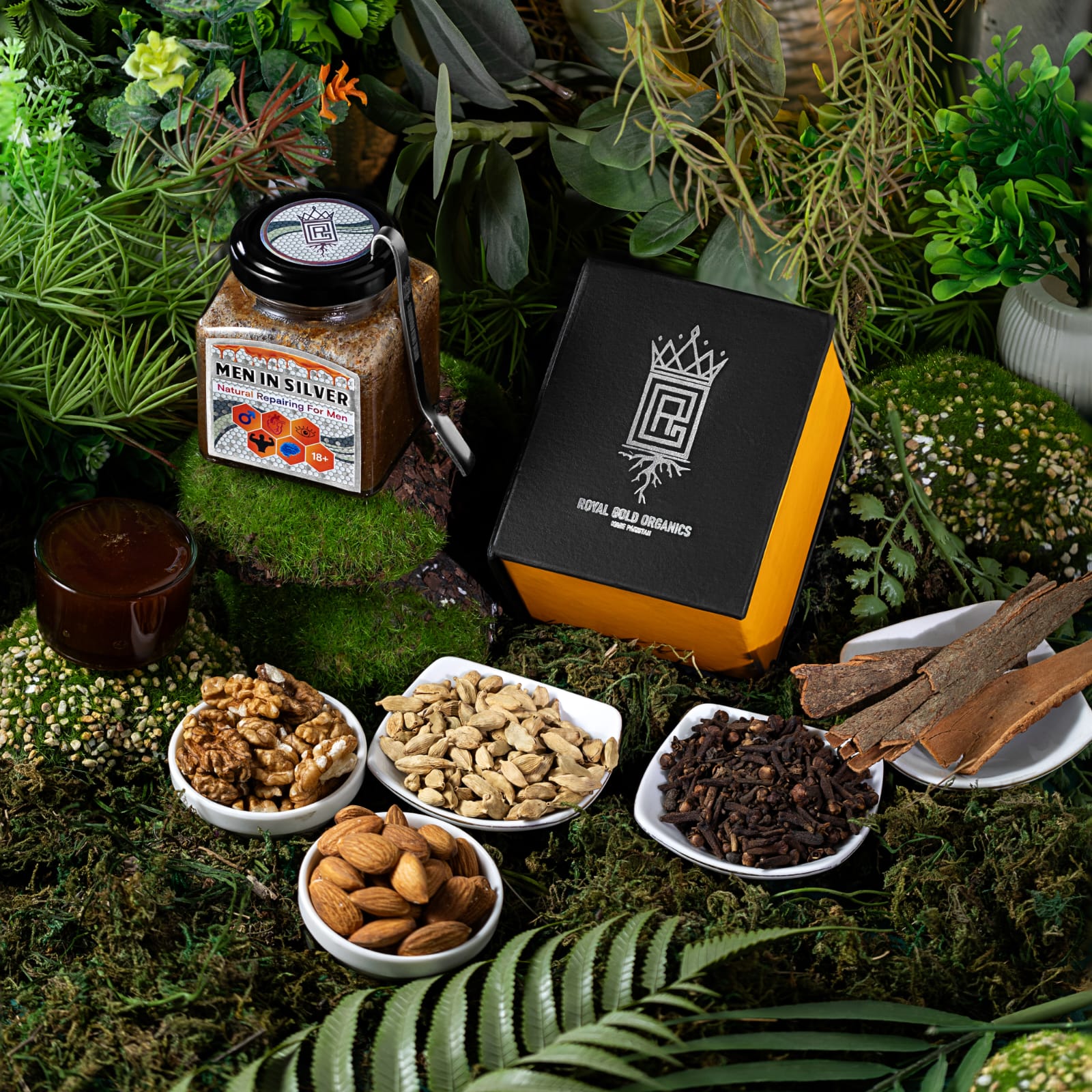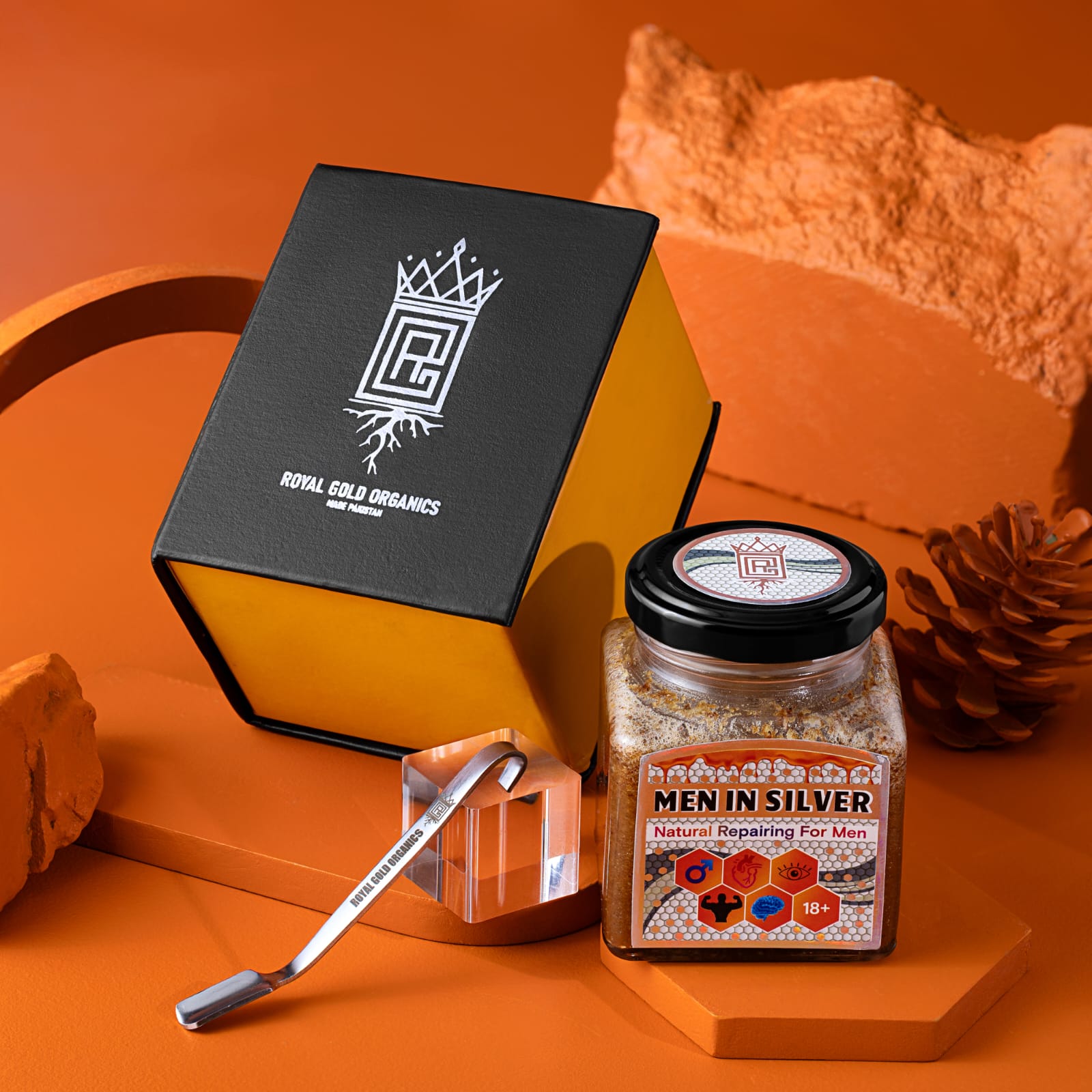 Men in Silver is a powerful Unani herbal Majoon designed to support male energy, stamina, and performance.Made with high-quality, chemical-free ingredients, it helps improve focus, vitality, and overall wellness.The natural aphrodisiac blend works to restore strength from within and keep you active throughout the day.Lab tested for purity and crafted by Royal Gold Organics, it’s safe and highly effective.Perfect for men who want to feel confident, energetic, and in control – naturally.
